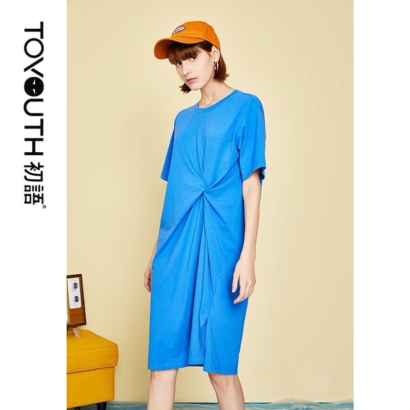 Женское однотонное Повседневное платье с круглым вырезом, короткими рукавами и галстуком-бабочкой