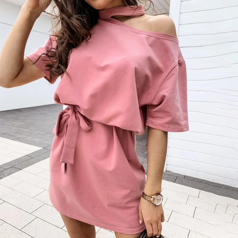 Белое Женское мини-платье на бретельках с открытыми плечами, женские платья на шнуровке с коротким рукавом, лето 2020, 100% хлопок, повседневная женская одежда