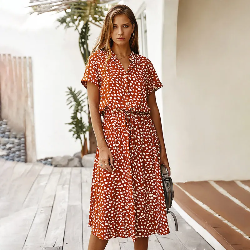 Женское однобортное платье миди в горошек, ТРАПЕЦИЕВИДНОЕ ПЛАТЬЕ С Коротким Рукавом и завязками, женские платья 2020, летняя винтажная женская одежда