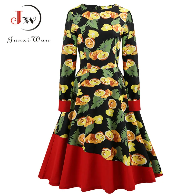 Зимние платья с длинным рукавом Винтаж Цветочный принт женское платье Повседневное осеннее платье Большие размеры одежды 50 s ретро элегант...