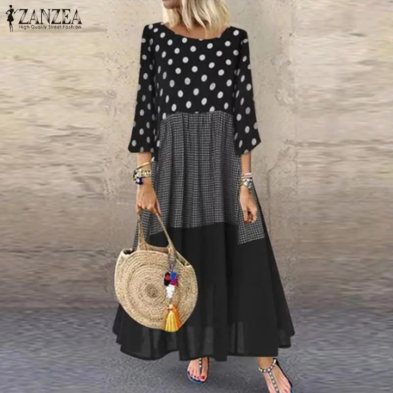 Осеннее винтажное платье с узором в горошек ZANZEA 2019, Женская Повседневная рубашка Vestidos, хлопковый длинный сарафан, Женская туника, халат, каф...