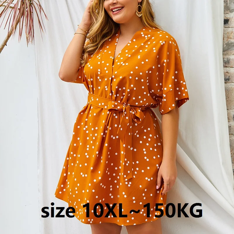Женское платье большого размера 8XL 9XL 10XL 100кг 150кг Свободное платье с v-образным вырезом и коротким рукавом из хлопка с принтом в горошек, женское Повседневное платье