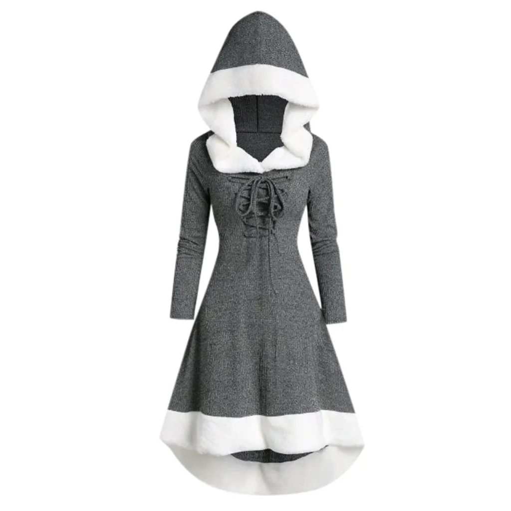 Винтажное Женское зимнее платье Vestidos, модное винтажное лоскутное платье с длинным рукавом и капюшоном, вечерние женские платья Sukienki 2019*3