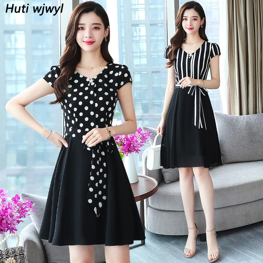 2019 винтажное Элегантное Черное Шифоновое Бохо мини-платье в горошек летнее плюс размер сексуальное пляжное платье в полоску женское облега...