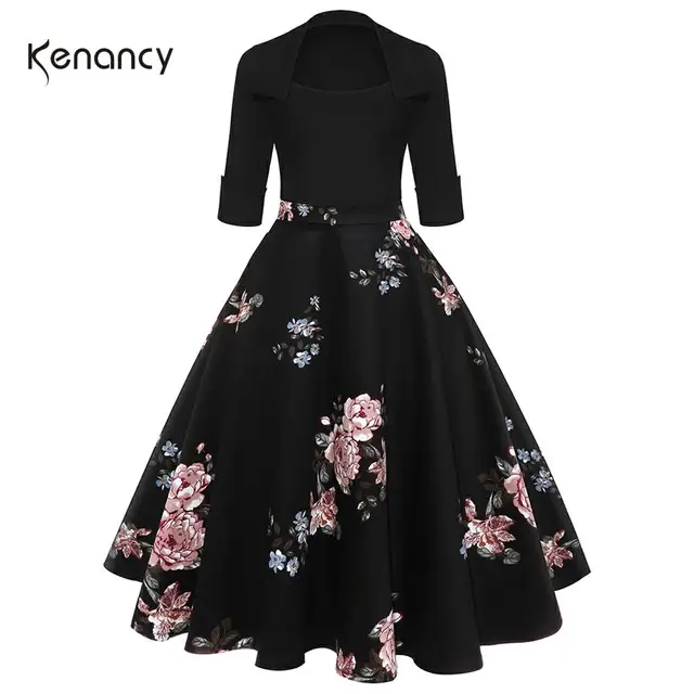 Kenancy женское винтажное платье с квадратным воротником и короткими рукавами, Хлопковое платье в стиле ретро, весенние вечерние платья в стиле рокабилли 1960s Feminino Vestidos
