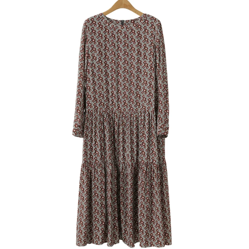 Новинка размера плюс, весна 2019, европейский стиль, цветочные женские платья с длинным рукавом, женские платья, свободные уличные женские платья, одежда