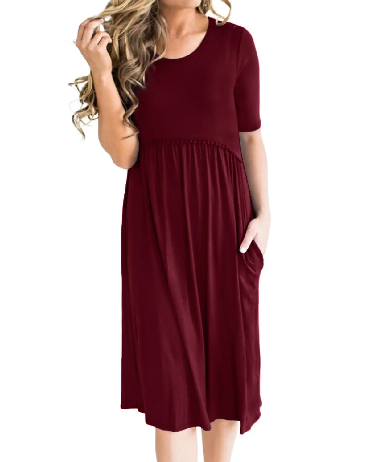 Винтажные платья 2019 Летние повседневные свободные женские с высокой талией с коротким рукавом с круглым вырезом до колена ТРАПЕЦИЕВИДНОЕ э...