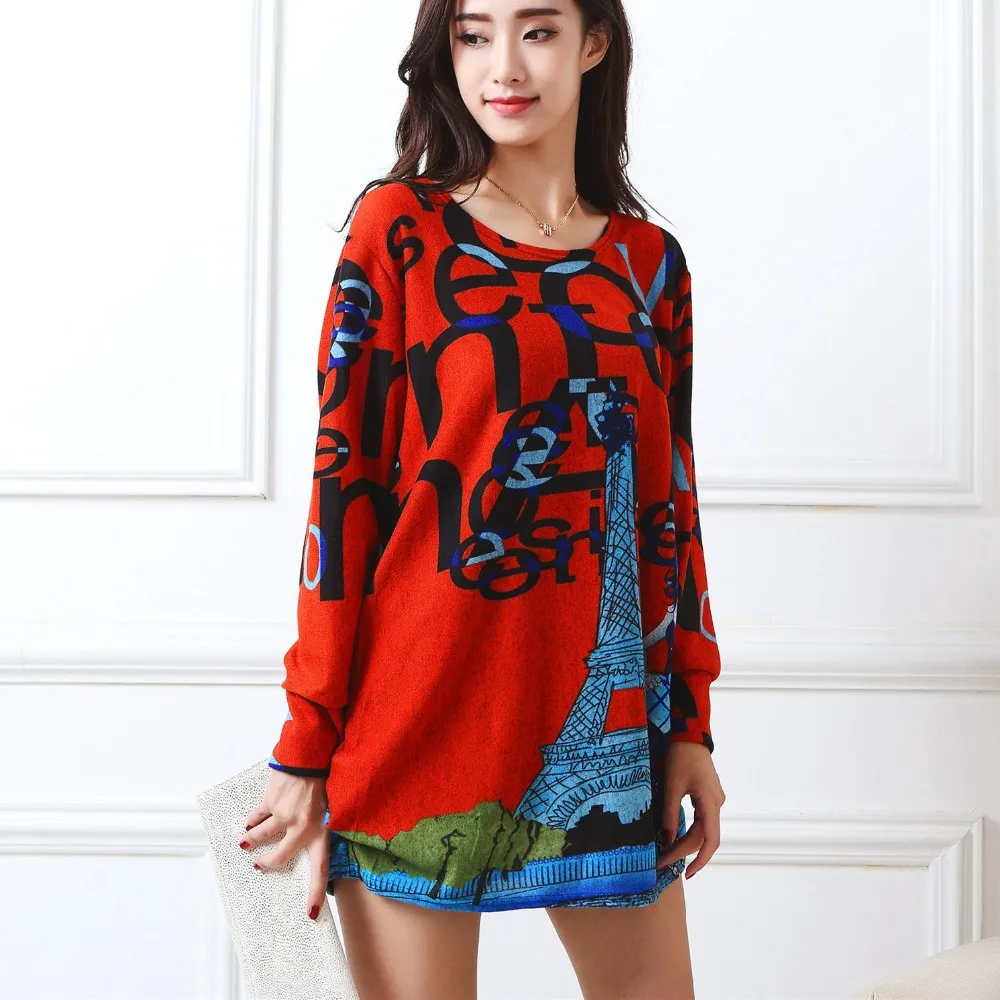Горячие зимние платья, модные, вязаные, с принтами, большой размер плюс 3XL, 4XL, с длинными рукавами, О-образным вырезом, свободные, богемные жен...