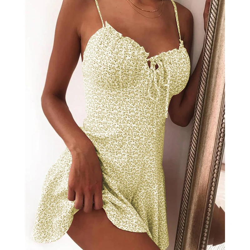 Сексуальное женское мини-платье на бретельках с v-образным вырезом и цветочным принтом, летнее повседневное богемное пляжное платье SJ5876U