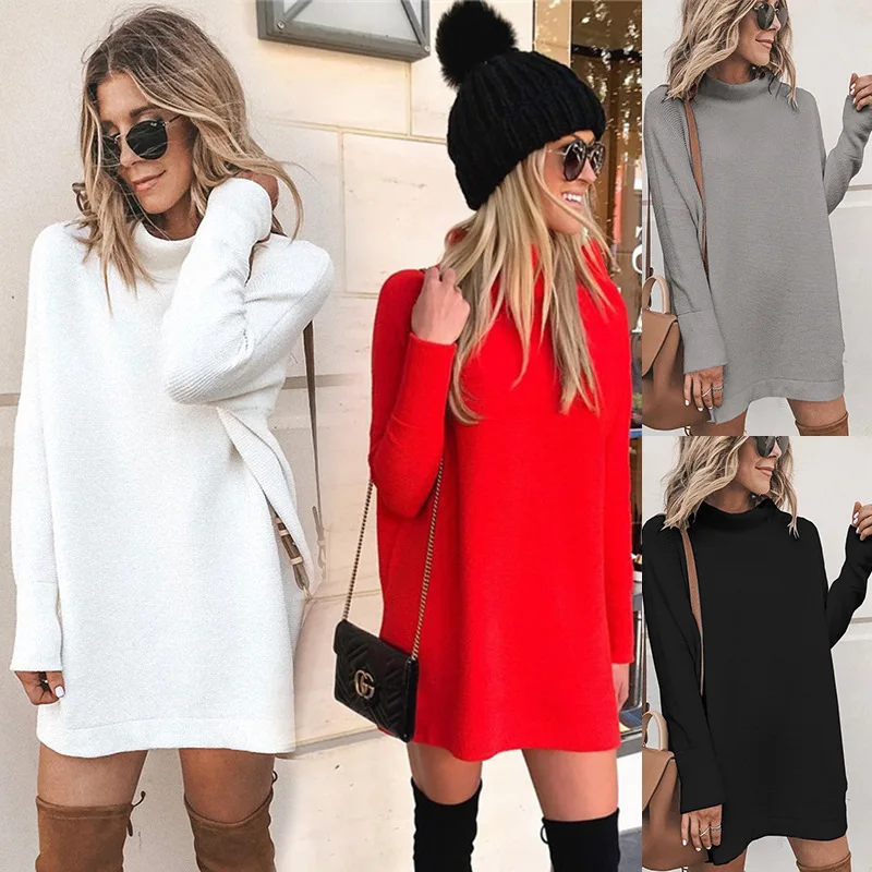 Для женщин с длинным рукавом О образным вырезом одноцветное цвет повседневное прямое платье Осень Зима Новая мода Простой основной дна мин...