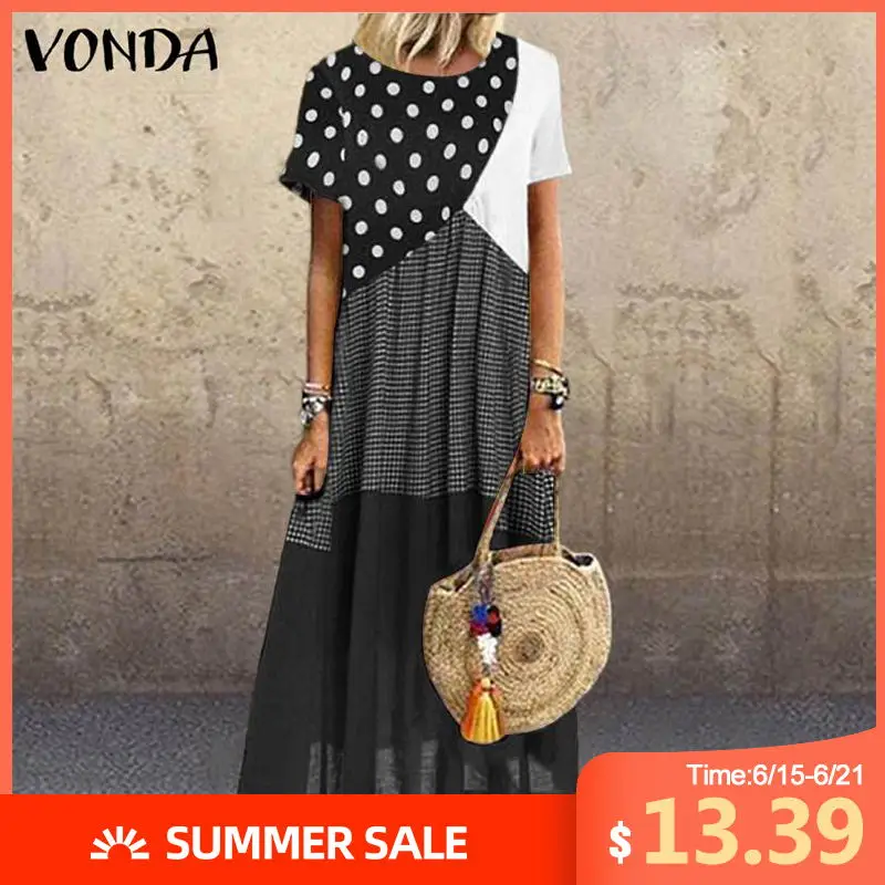 Женское платье с оборками VONDA, повседневное длинное платье макси в горошек с круглым вырезом и коротким рукавом, летние богемные вечерние платья S-5XL, 2020