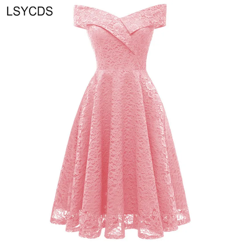 LSYCDS Белое Кружевное Платье женское 2019 летнее сексуальное с открытыми плечами с v-образным вырезом ТРАПЕЦИЕВИДНОЕ Двухслойное элегантное ви...