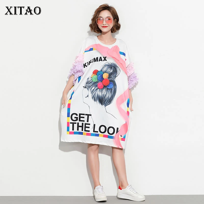 Женское кружевное платье-пуловер до колена XITAO, повседневное свободное платье до колена с короткими рукавами и принтом в виде букв, весна-лето 2019