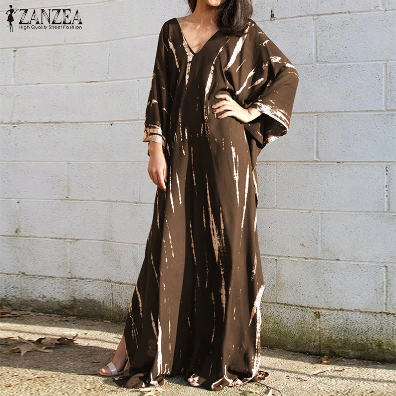 Богемное женское платье с v-образным вырезом и рукавом, ZANZEA, осень, макси, длинный сарафан, кафтан, Vestido, повседневное, с принтом, платья для вечеринок, Халат