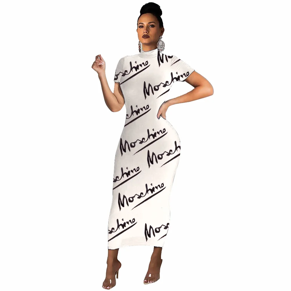 Echoine 2020 Fashion Maxi Long Dress Short Sleeve Black Letter Print Dresses Women Sexy Party Skinny Bodycon Elegant vestido