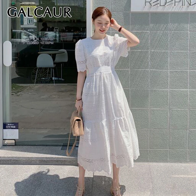 Женское кружевное платье с круглым вырезом GALCAUR, винтажное элегантное платье-туника большого размера с рукавом-колокольчиком и высокой талией, лето 2020