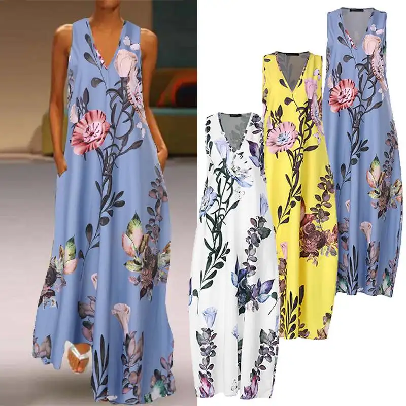 ZANZEA богемное женское платье 2019 летний сарафан сексуальные дамы V шеи вечерние длинные платья макси Vestidos цветочный принт пляжное платье 5XL