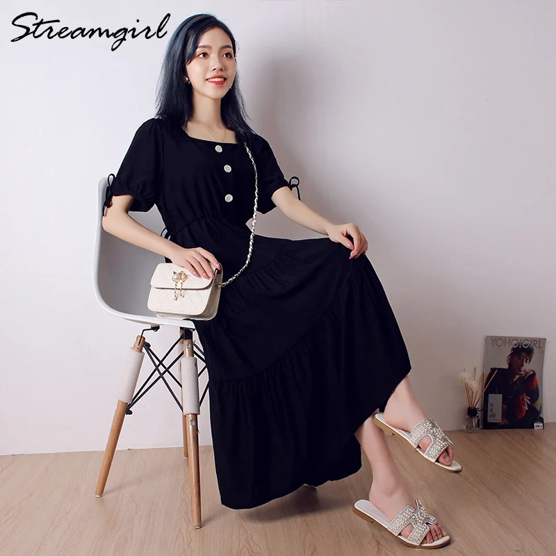 Желтое летнее платье для женщин, длинные платья, женское свободное платье в стиле ретро со шнуровкой сбоку, винтажные летние платья на каждый день, лето 2020