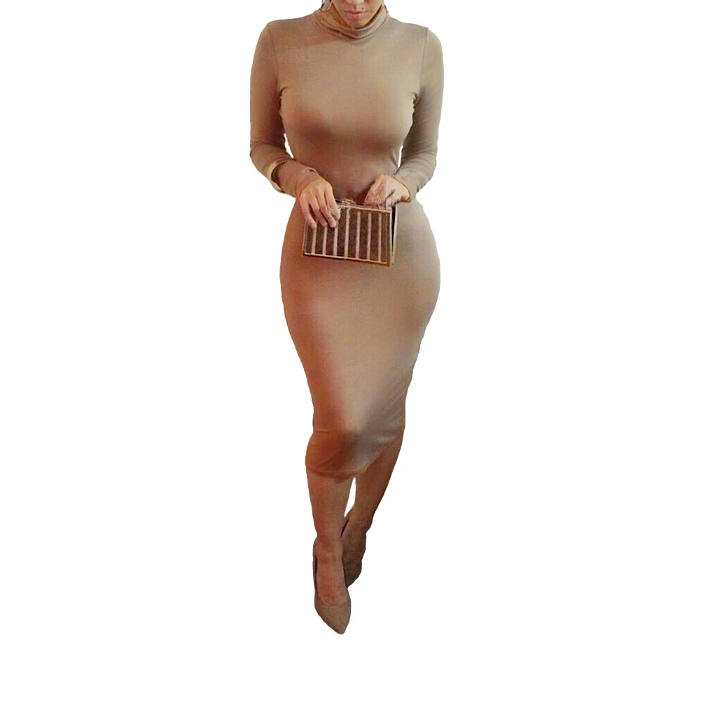 Женское сексуальное Клубное платье 2019 Водолазка с длинным рукавом зимнее платье-карандаш облегающее платье Vestidos Клубная одежда