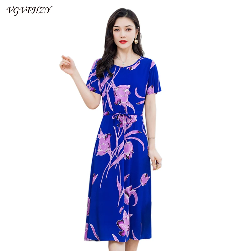 Женские платья, летнее модное вечернее платье с принтом среднего возраста, 2020 Новое повседневное Свободное длинное платье с коротким рукавом, большие размеры, Vestidos