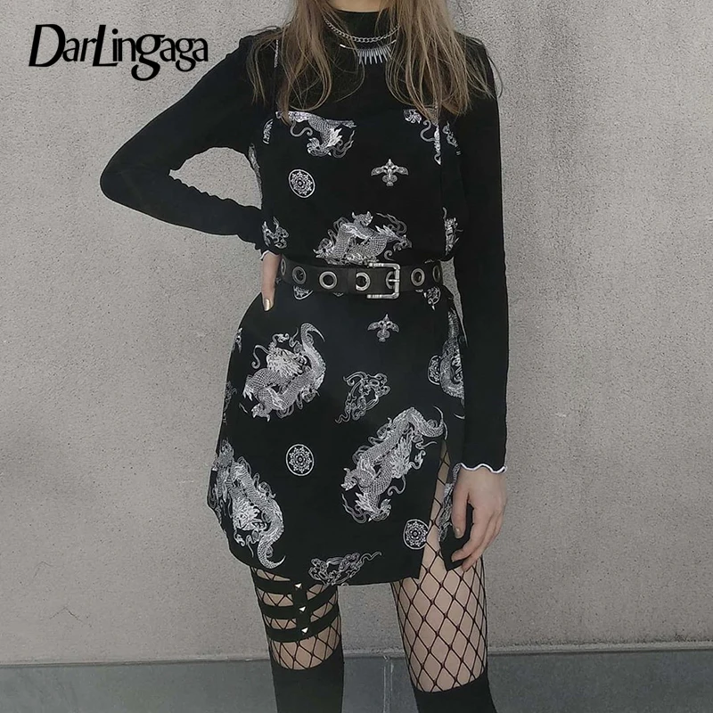 Женское платье с разрезом по бокам Darlingaga, черное платье с принтом дракона в китайском стиле, Летнее мини-платье с открытой спиной, новые платья
