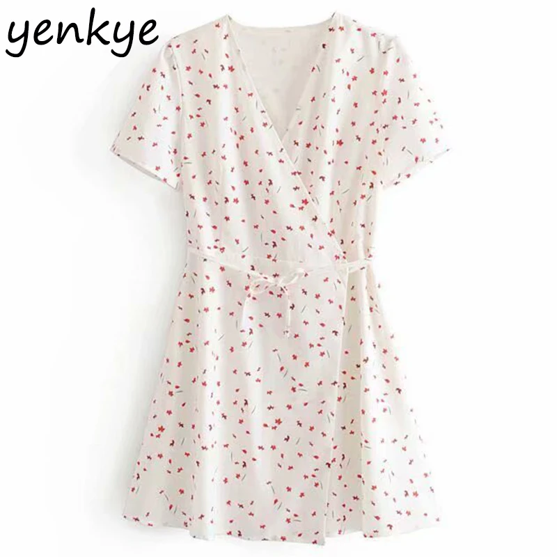Simenual Сексуальная V шеи неоновое платье Однотонная повседневная обувь Для женщин Bodycon платья короткий рукав Обёрточная бумага Клубная одежд...