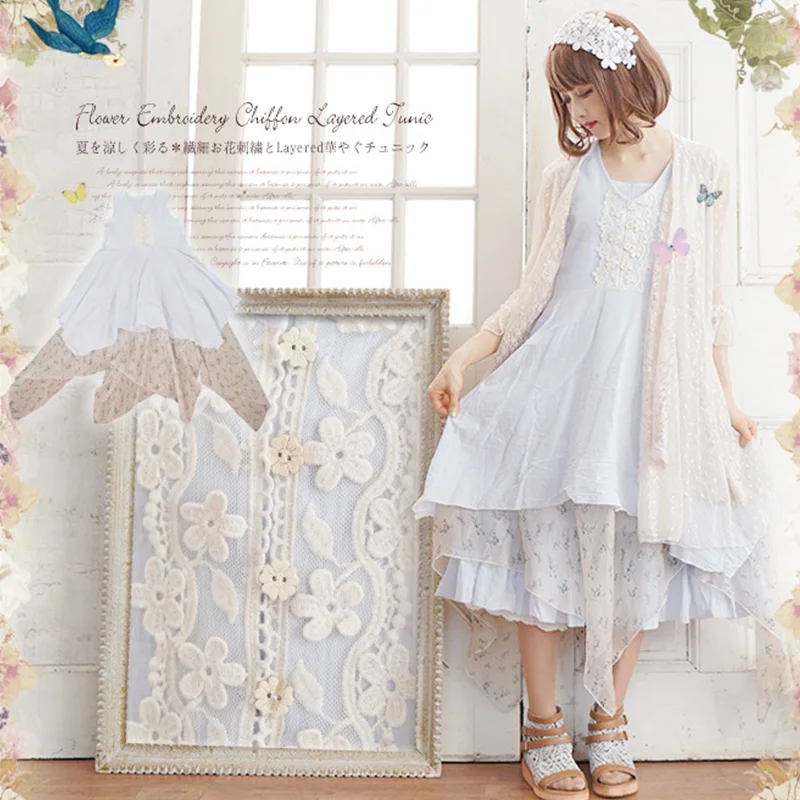 Лето Мори девушка сладкий асимметричное платье для женщин без рукавов кружево двойной слои вышивка женский Vestido хлопок женское платье A226