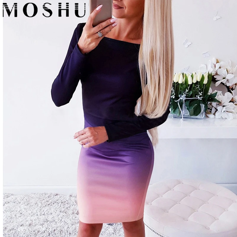 Мини-платье для женщин, многоцветные платья, элегантное офисное женское платье, градиентный цвет, повседневное короткое платье с длинным ру...
