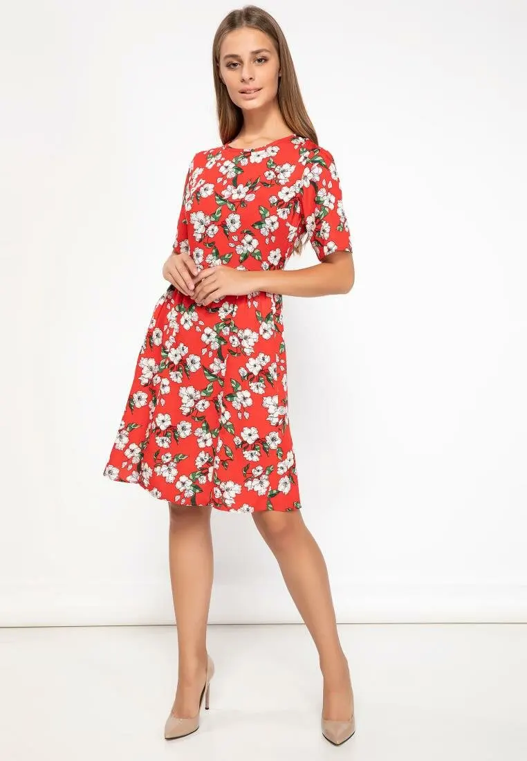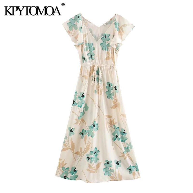 KPYTOMOA женское элегантное модное платье миди с цветочным принтом, винтажное платье с v-образным вырезом, коротким рукавом и завязками на завязках, 2020