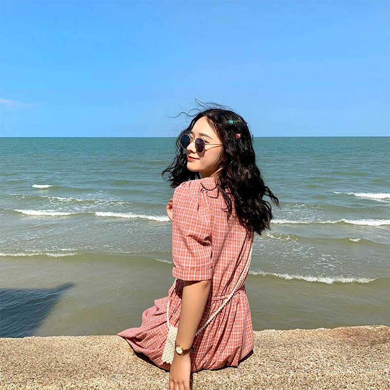 Женские мини платья Элегантный Королевский синий Алин простой плиссированный пуговицы сладкий короткое платье