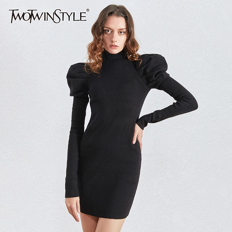 TWOTWINSTYLE, вязанное женское платье с рюшами, водолазка, длинный рукав, тонкий свитер, платье для женщин, одежда 2020, модная новинка