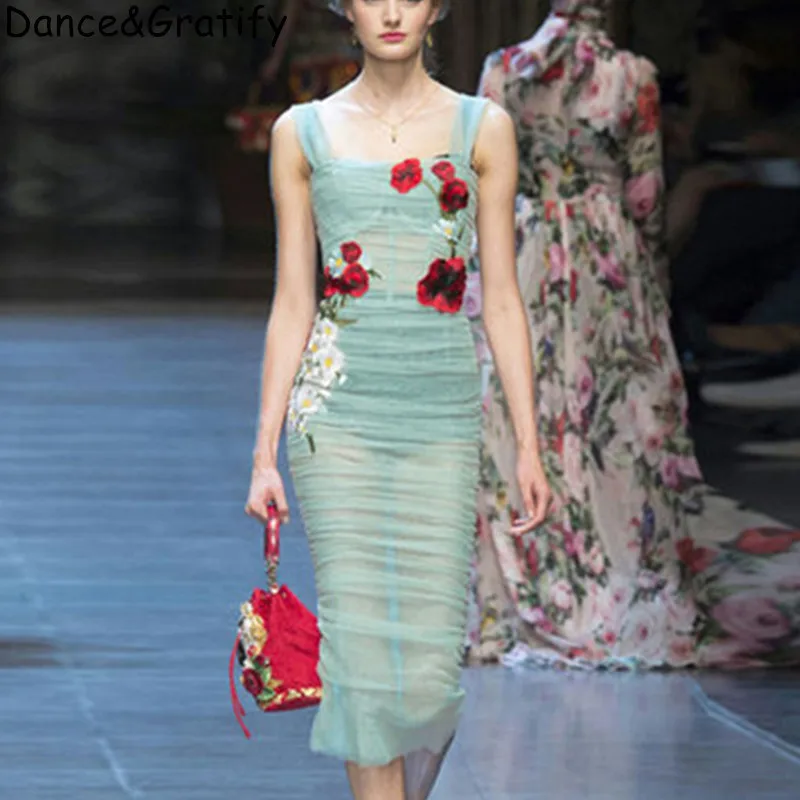 2019 летние Брендовая Дизайнерская обувь знаменитости взлетно-посадочной полосы длинное платье Для женщин Винтаж Вышивка Цветы сексуальное,...