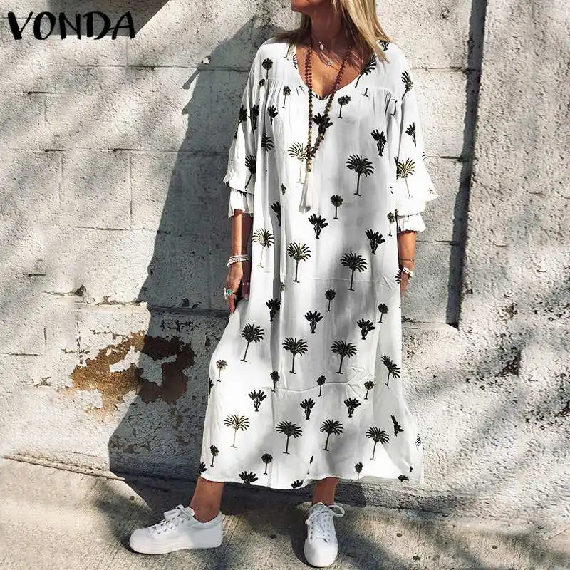 VONDA/длинное платье макси с принтом, женский сарафан 2019, повседневное свободное богемное пляжное платье с длинными рукавами, летнее, большие размеры, вечерние платья