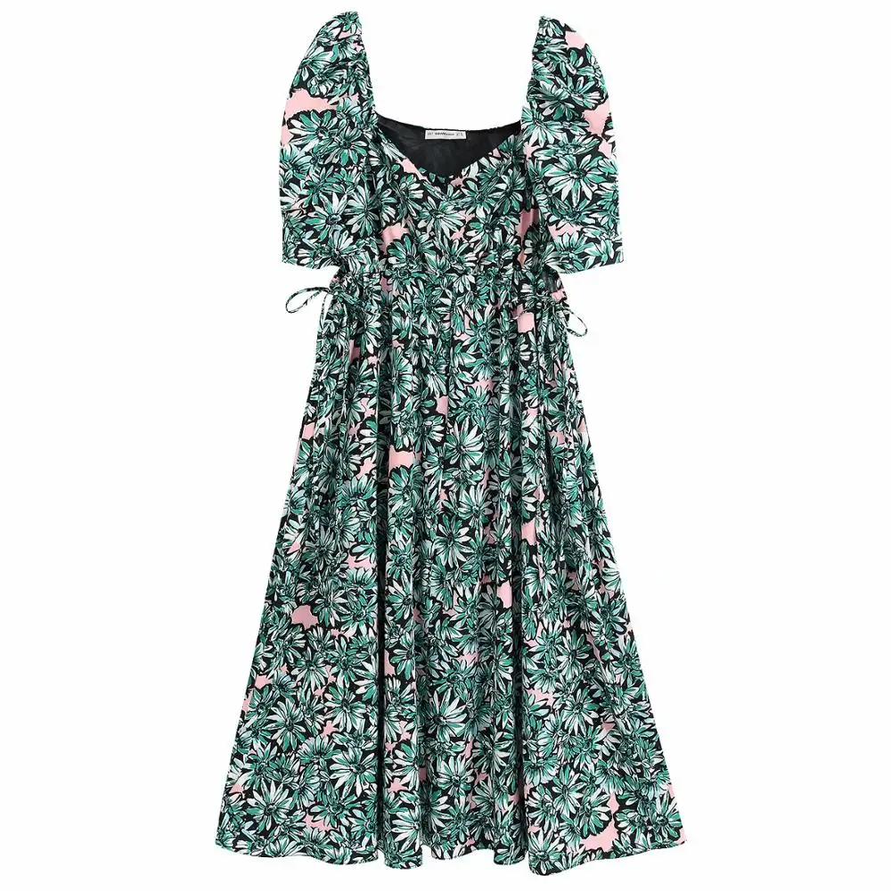 ZAFUL Платье миди с открытыми плечами с цветочным принтом Повседневные сладкие летние девочки Пляжные платья Платье De Festa Хлопковое одеяние Для Женщин