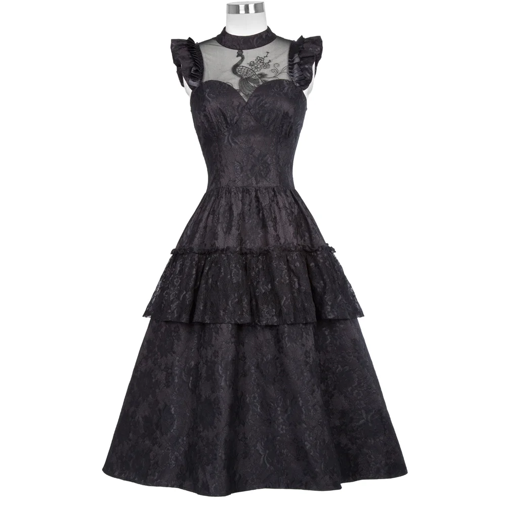 Belle Poque 40 s 50 s Винтаж Викторианский стимпанк готический стиль женское платье 2018 лето женские элегантные Раффлед с высоким воротом Пышное Пла...