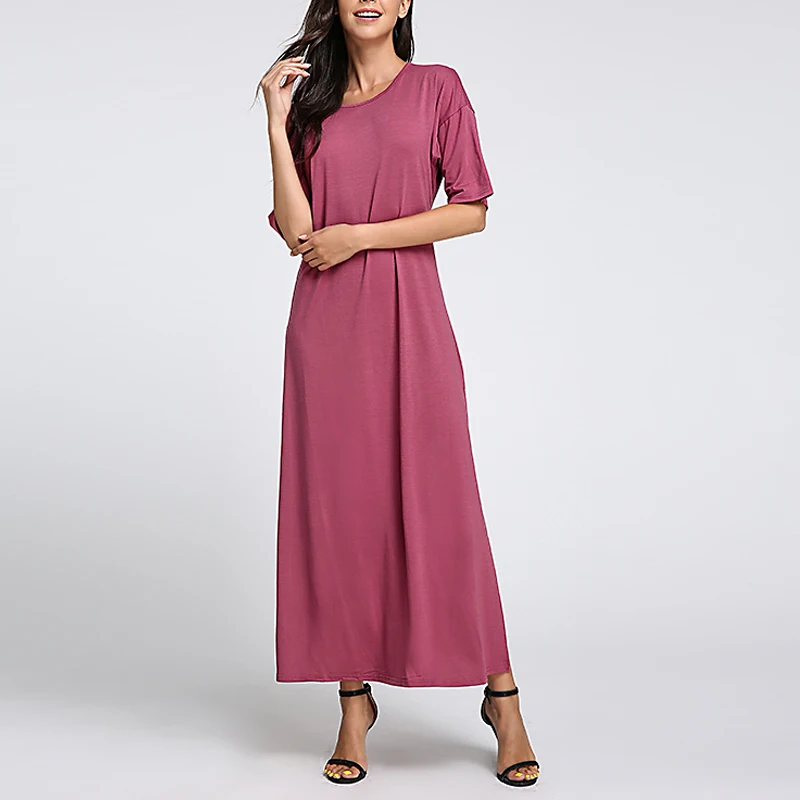 Летнее платье 2020 женское повседневное свободное платье с коротким рукавом однотонное длинное платье с круглым вырезом пляжное платье с изогнутым подолом Vestidos плюс размер 4XL