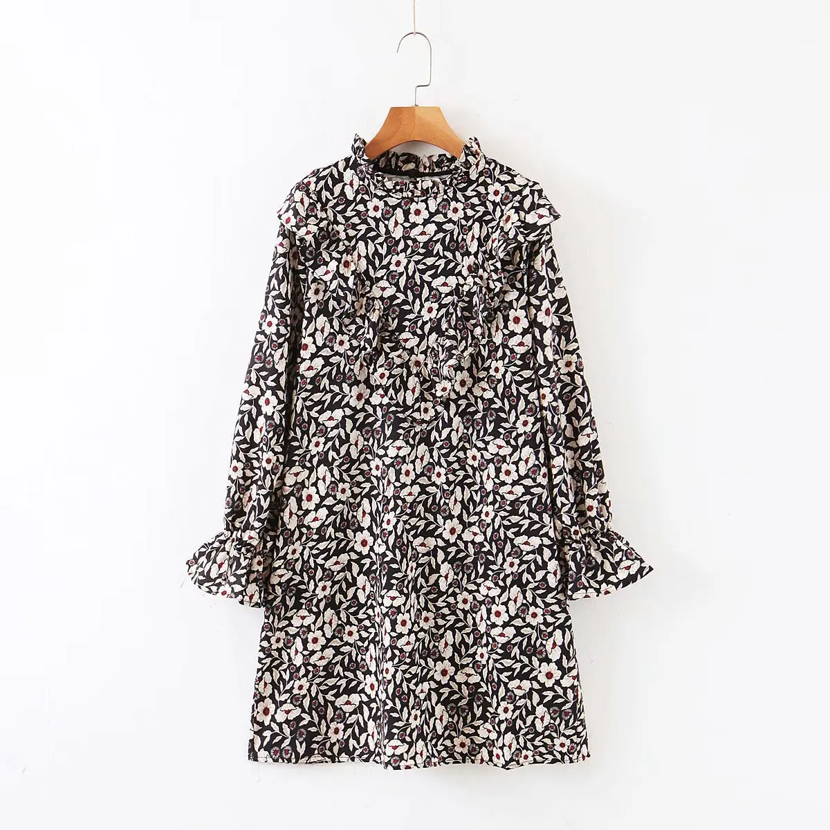 Женское шикарное мини-платье с цветочным узором, с оборками, с длинным рукавом-колокольчиком, прямые женские повседневные модные платья Vestidos