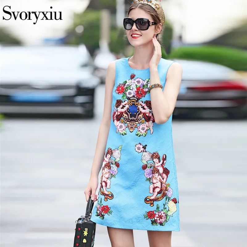 Svoryxiu 2019 взлетно посадочной полосы брендов Лето трапециевидной формы короткое платье; женская бриллиантами блестками Ангел цветочный принт