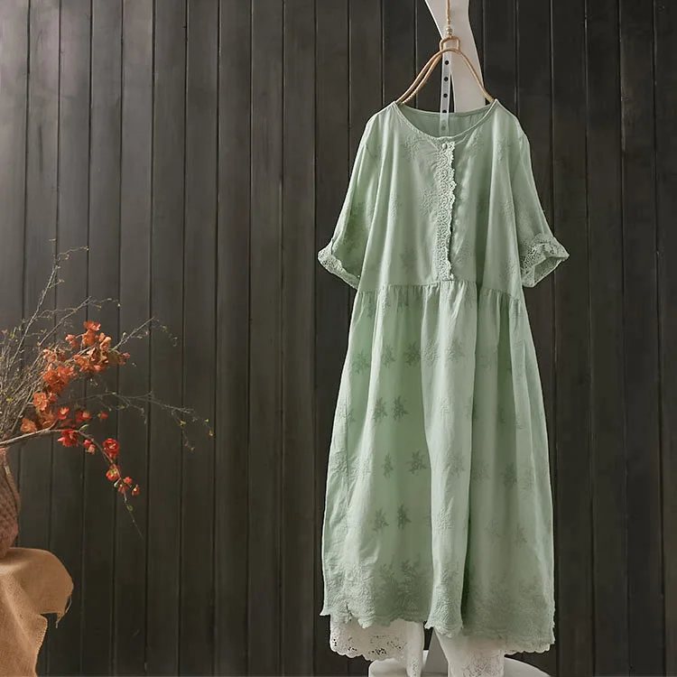 Хлопковое платье с короткими рукавами и круглым вырезом для девочек