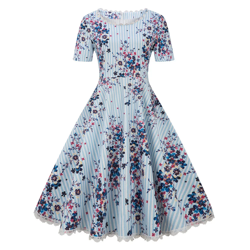 Плюс Размеры цветочный платье с принтом женские большие Размеры молодой вечерние платья с круглым вырезом короткий рукав в стиле ретро с ми...