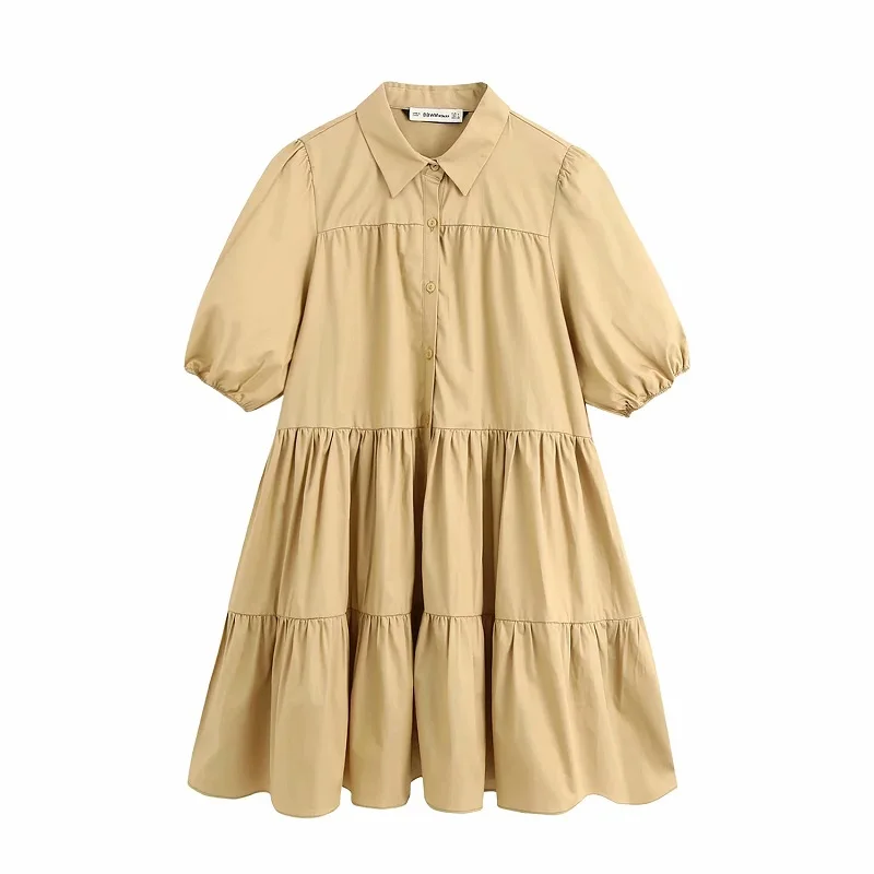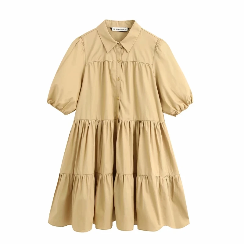 Новинка 2020 женское простое однотонное Плиссированное мини-платье с пышными рукавами, большие качели, офисные женские пуговицы, Vestido, шикарные Повседневные платья DS3781