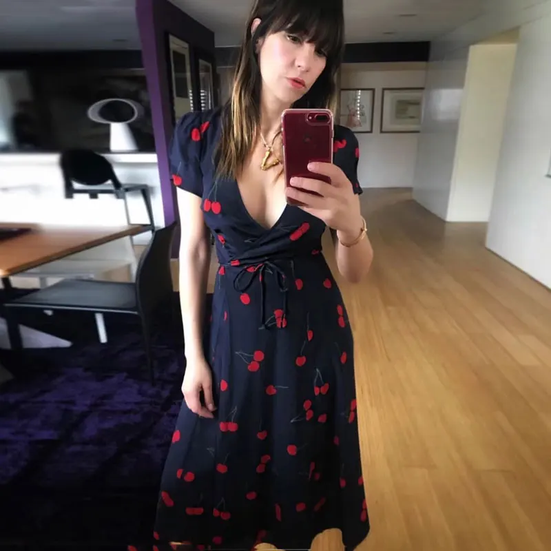 Пикантные V образным вырезом летнее платье Макси платье с вишневым принтом шифон короткий рукав boвечерние HO пляжное элегантное 2018 роковой ...
