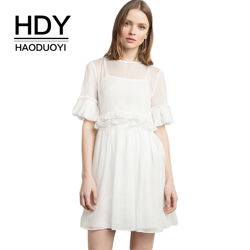 HDY Haoduoyi женское мини-платье однотонный Сладкий платья прозрачные свободные оборки консервативный стиль два комплекта сексуальное Повседне...