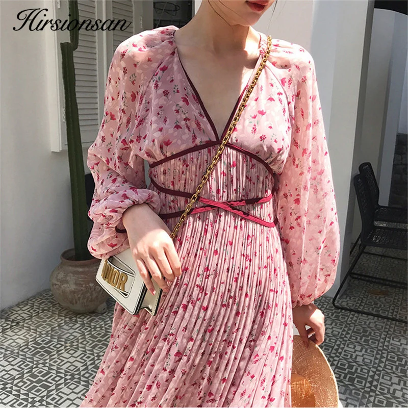 Hirsionsan тонкое шифоновое пляжное платье для женщин, новинка 2020, Харадзюку, китайское праздничное свободное платье, винтажное сексуальное женское длинное платье с цветочным рисунком