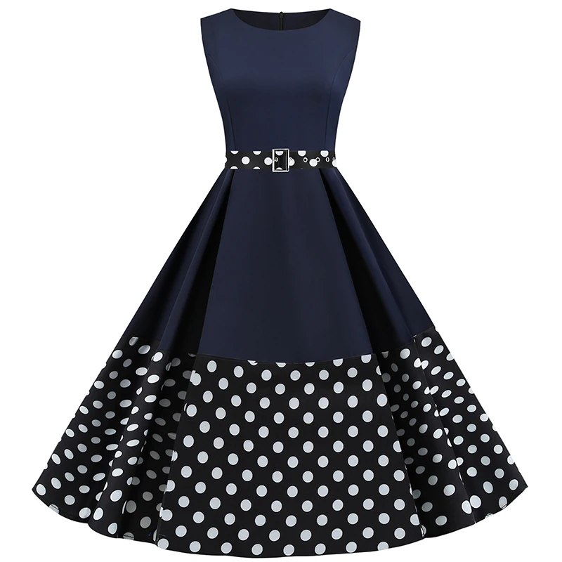 2020 летнее женское лоскутное платье средней длины без рукавов с круглым вырезом, облегающее ТРАПЕЦИЕВИДНОЕ платье в горошек с высокой талией, Повседневное платье vestidos mujer