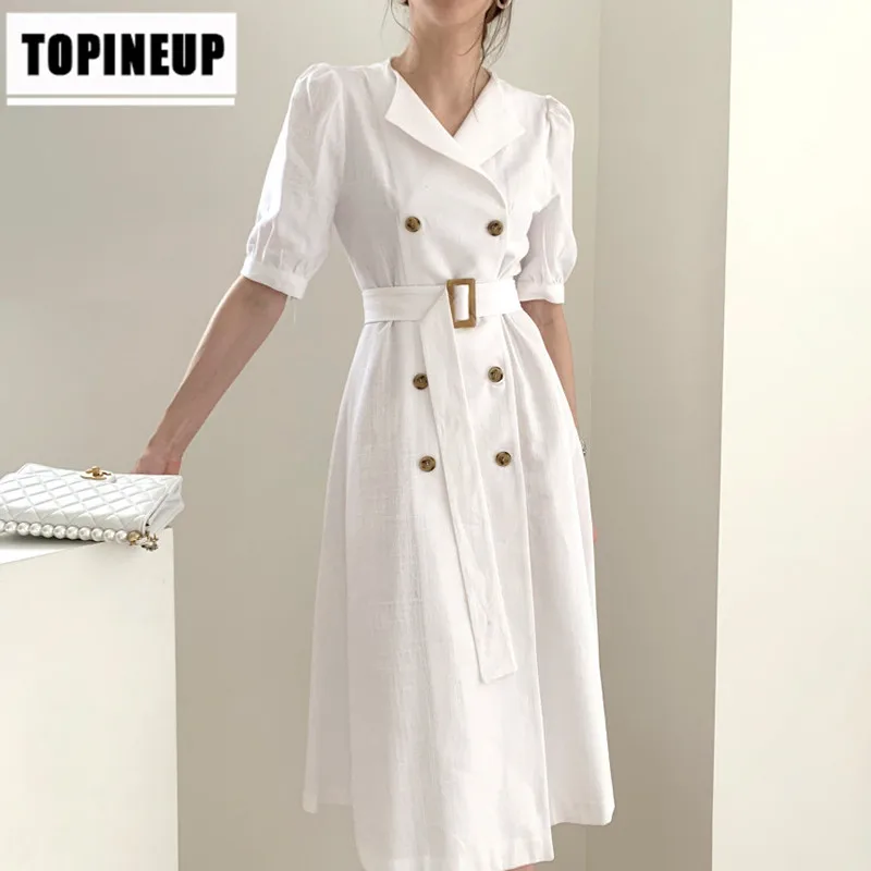 Летний Новый дизайн, хорошо проданный двубортный пояс, тонкое платье с поясом, элегантные однотонные платья для женщин, удобные