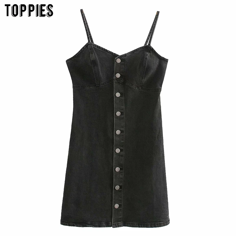 Toppies/черное джинсовое платье для мальчиков, Летнее мини-платье, однобортное Сексуальное Женское Платье