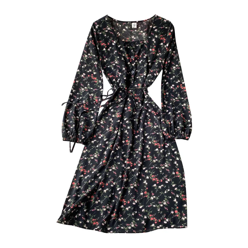Новинка 2020 года; сезон весна-лето; платье феи во французском стиле для девочек; платье с квадратным воротником и рукавами-фонариками; шифоновое платье с цветочным принтом и шнуровкой на талии; ML746