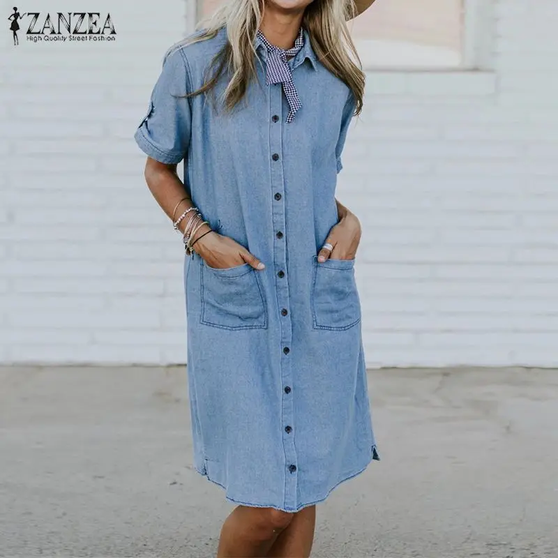 ZANZEA плюс размеры платье рубашка для женщин летние повседневное Мини Женский отложной воротник Короткие Vestido халат леди пляжн