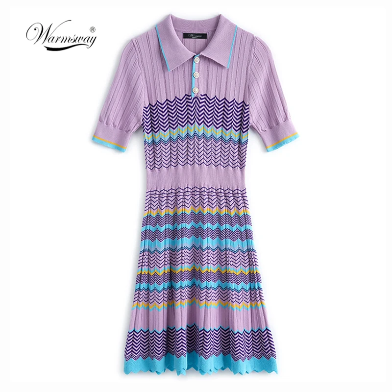 Летнее платье Для женщин выдалбливают волны полосатый вязаный элегантное платье 2020 с лацканами короткий рукав Платья-свитеры Vestidos халаты C-026